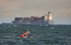 Auch auf der Langstrecke über 6 Kilometer entwickelte sich ein dramatisches Rennen. Der 2-km-Kurs musste drei Mal gefahren werden, mit zahlreichen Wenden, die immer wieder für Spannung sorgten. Gleich an der ersten Boje kam es zu einer Kollision mit einem dänischen Boot, wodurch das deutsche Team kurz ausgebremst wurde. Doch die Crew kämpfte sich zurück ins Rennen und hielt den dritten Platz hartnäckig.
